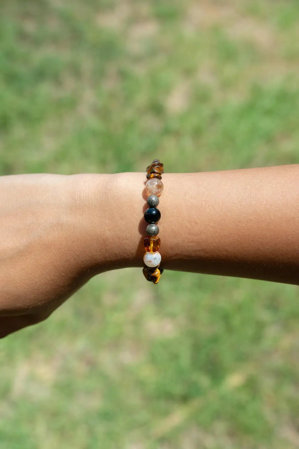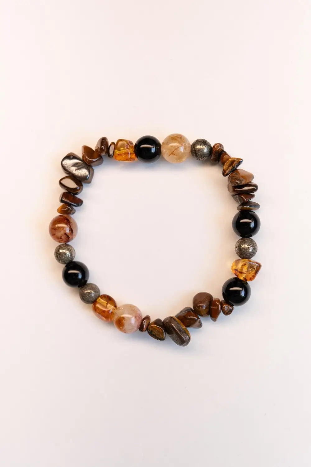 ✨ Pierres semi-précieuses : Œil de Tigre, Onyx, Ambre, Pierre de Soleil, Pyrite